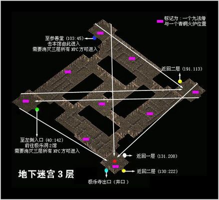 极乐洞洞口(338,100):需要从地下迷宫1层开始进入,距离本馆较远。